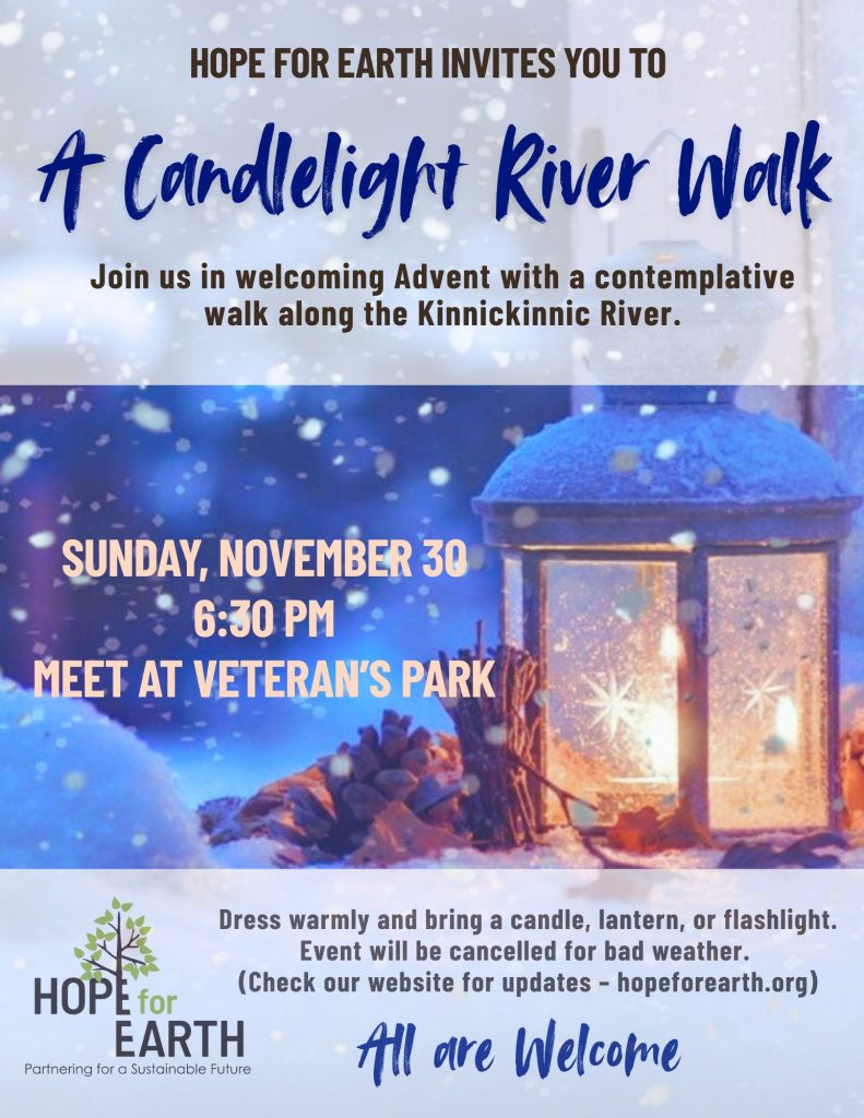 Hope For Earth “A Candlelight River Walk” Event – November 30, 2025, 6:30 PM at Veterans Park in River Falls, WI:
